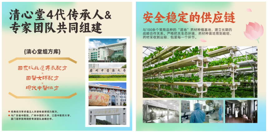 清心堂始于1906年,是首批国家级非物质文化遗产企业、广州老字号代表,屡获“广州十大手信”等荣誉。百年匠心,坚守岭南养生文化,如今以全新姿态进军健康茶饮市场。