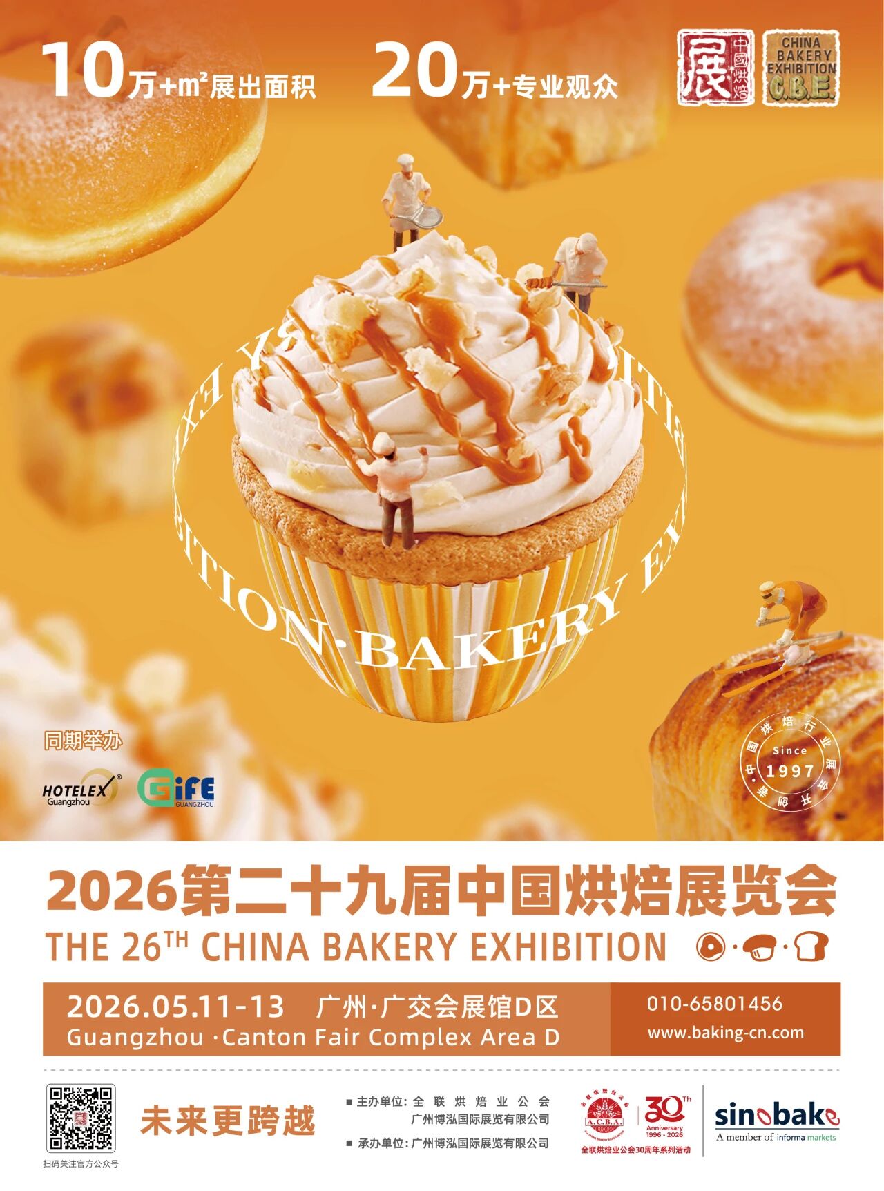 2026年正值中国烘焙业高质量发展30周年,作为行业开年首场“烘焙+”盛会,本届将同期举办“中国烘焙高质量发展30周年庆典”系列活动,全面展示中国烘焙产业三十年辉煌成就与创新突破。同时再度携手HOTELEX酒店餐饮展、Gife连锁加盟展联动举办,为中国烘焙+食饮产业链上下游企业打造更广阔的交流服务平台,加速激发行业新动能,推动中国烘焙业与国际市场深度接轨,驱动全产业链升级,开启“品质创新向未来”的新篇章!