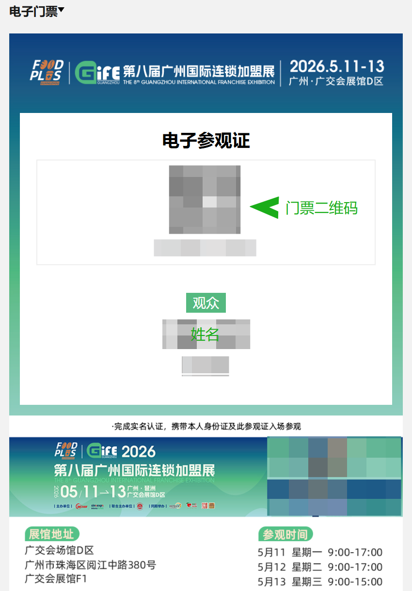 凭此电子参观门票进场