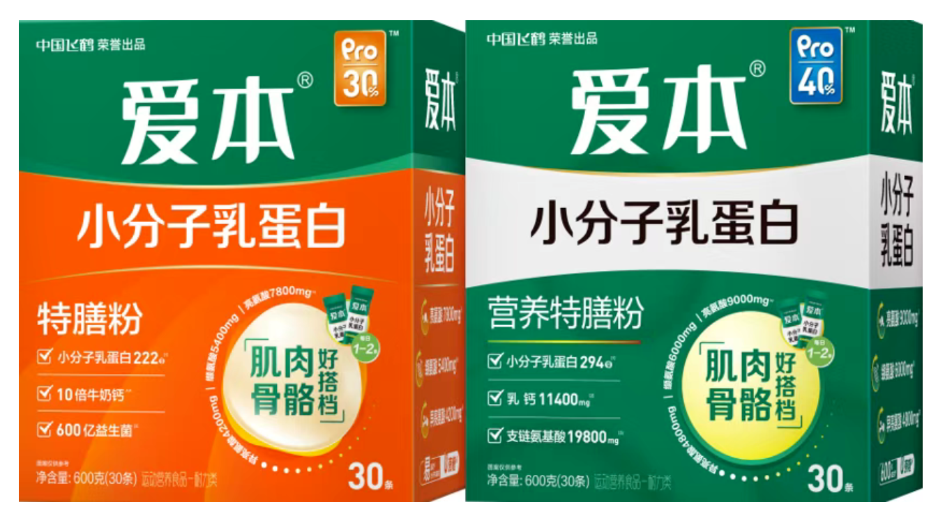 近日,飞鹤旗下中老年营养品品牌爱本推出「小分子乳蛋白」新品。