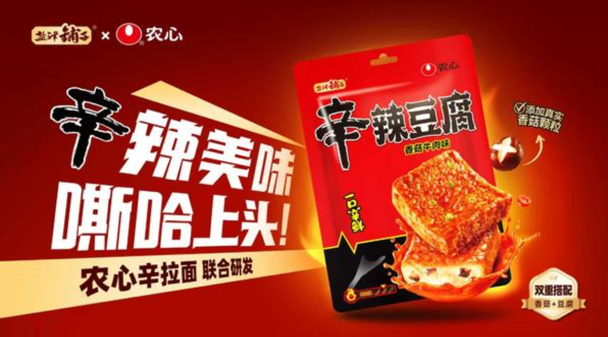 近日,盐津铺子与农心联合推出「辛辣豆腐」新品。