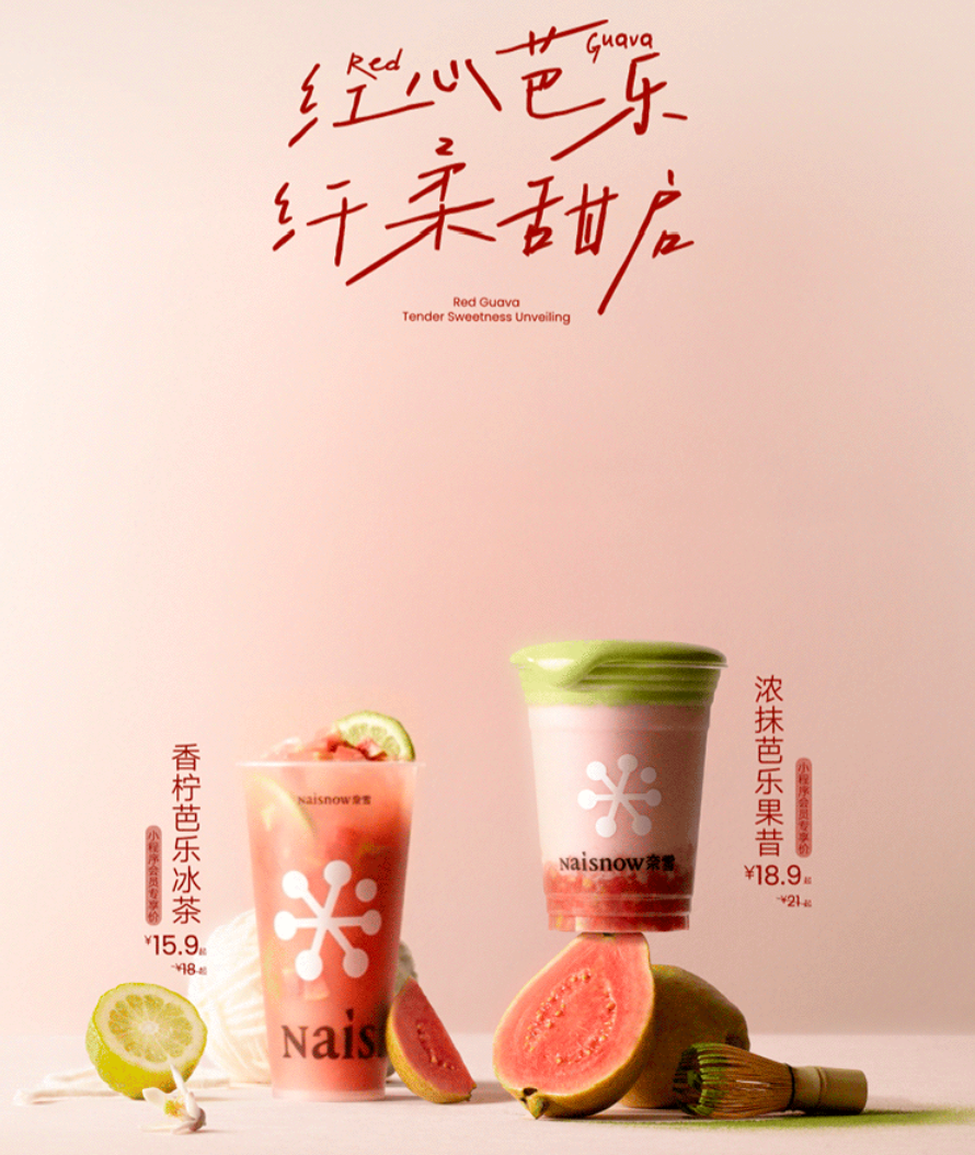 近日,奈雪的茶上新「浓抹芭乐果昔」与「香柠芭乐冰茶」两款饮品。