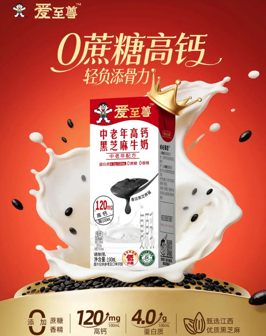 近日,旺旺爱至尊上新「中老年高钙黑芝麻牛奶」。
